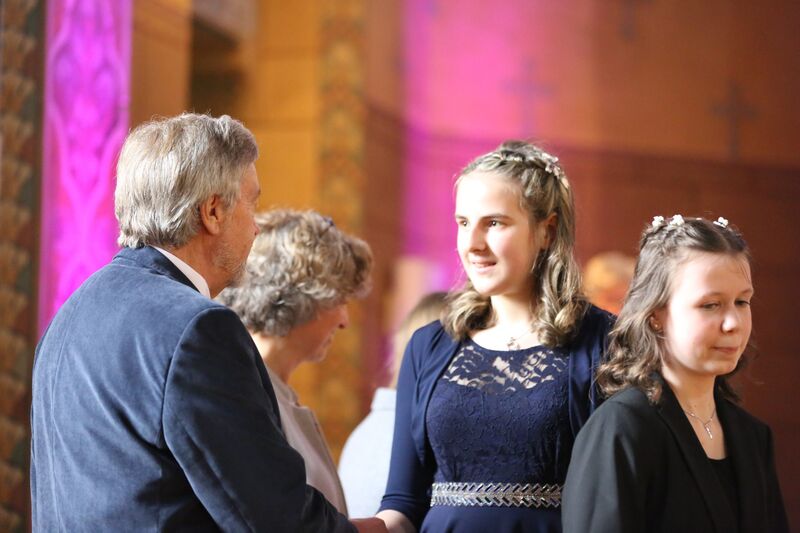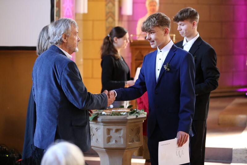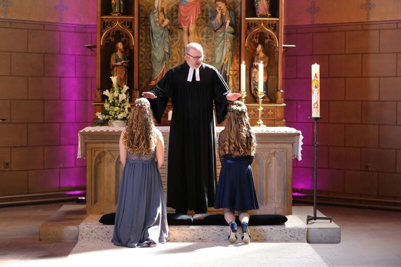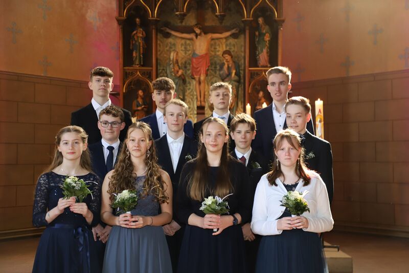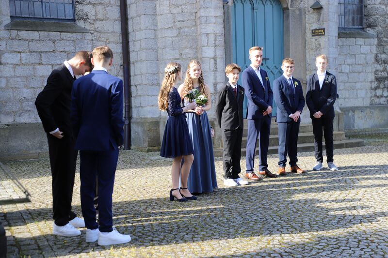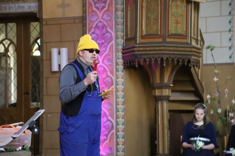 Mit Applaus wurde in den Konfirmationsgottesdiensten am 29. und 30.4. in der St. Johanniskirche nicht gespart. Dazu hatten die etwa 600 Besucher:innen in den beiden Gottesdiensten auch allen Grund. Orgel und Band sorgten für eine kurzweilige musikalische Mischung, die Mitarbeiter:innen in der Jugendarbeit gaben den 20 Konfirmand:innen im Fürbittengebet und durch einen persönlichen Brief gute Wünsche mit und Pastor Kay Oppermann unterzog Eltern, Paten und Kirchenvorstand als Hausmeister „Schorse Halleluja“ einer nicht ganz ernst gemeinten Glaubensprüfung zu den 10 Geboten. Dabei sollte es für Gäste möglichst einfach sein. Kurze Musikstücke wiesen auf das jeweilige Gebot hin, so dass Antworten auch nicht lange ausblieben. Die Botschaft des aus „Personalmangel“ auch für Glaubensfragen zuständigen Hausmeisters: „Lass Gottes Liebe wie Sonnenstrahlen in dein Herz“.