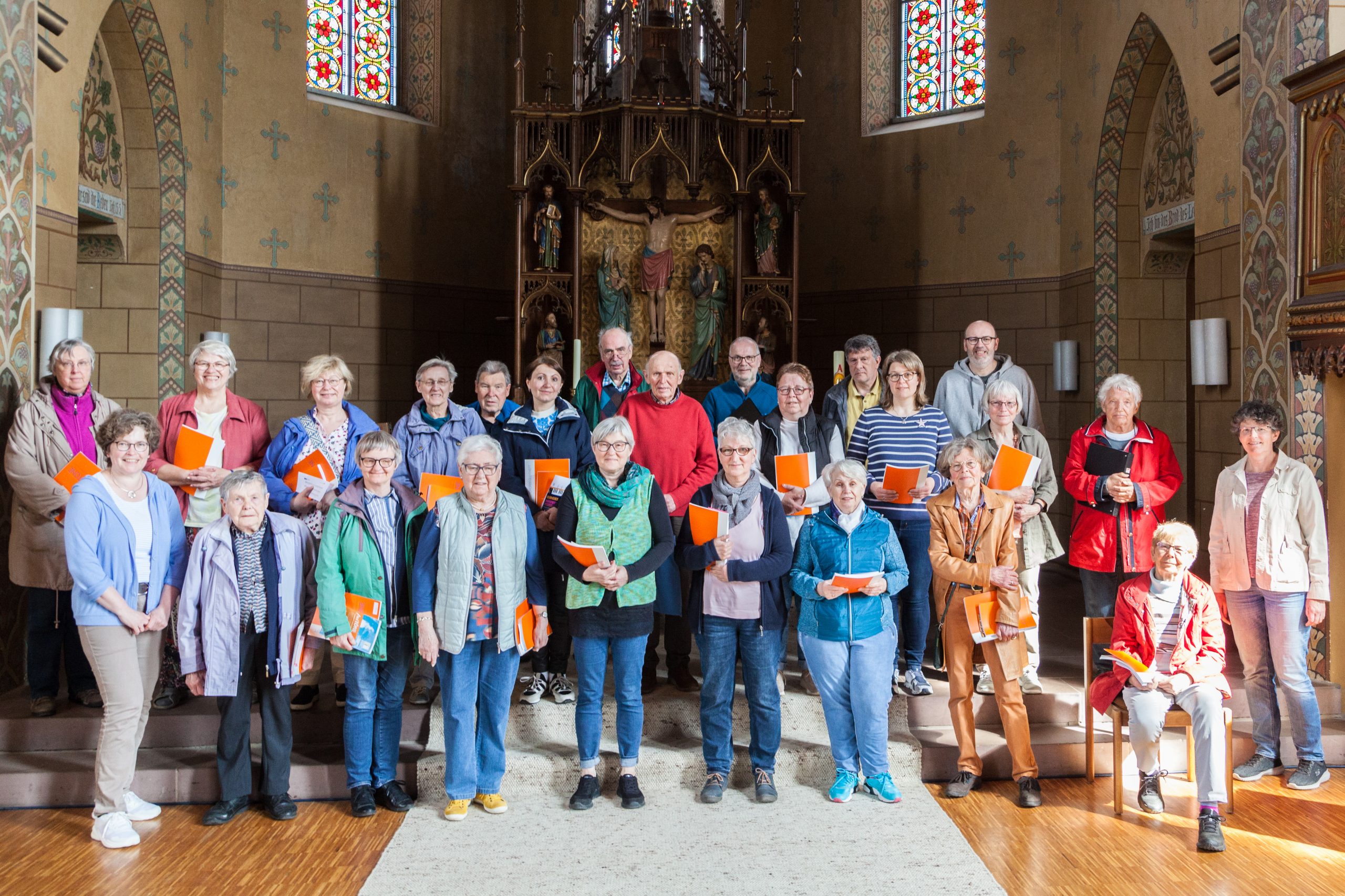 „Jubilate Everybody“ sang der Projektchor am Sonntag, 23.4. im Gottesdienst um 10 Uhr in der St. Johanniskirche. Über den Noten stand „Rock“ und das nahmen die 25 Sänger:innen bei ihrem Vortrag sehr ernst. Mit großem Schwung und Rhythmus sang die Gruppe aus dem evangelischen Kirchenchor, dem katholischen Kirchenchor St. Michael und neuen Gesichtern sich einmal quer durch neue und alte Stücke von Mozart bis zur Gegenwart. Die Chorleiterinnen Jutta Schlesselmann und Maria Büsing hatten die Musik in nur drei Proben in den Tagen vor dem Auftritt erarbeitet.
